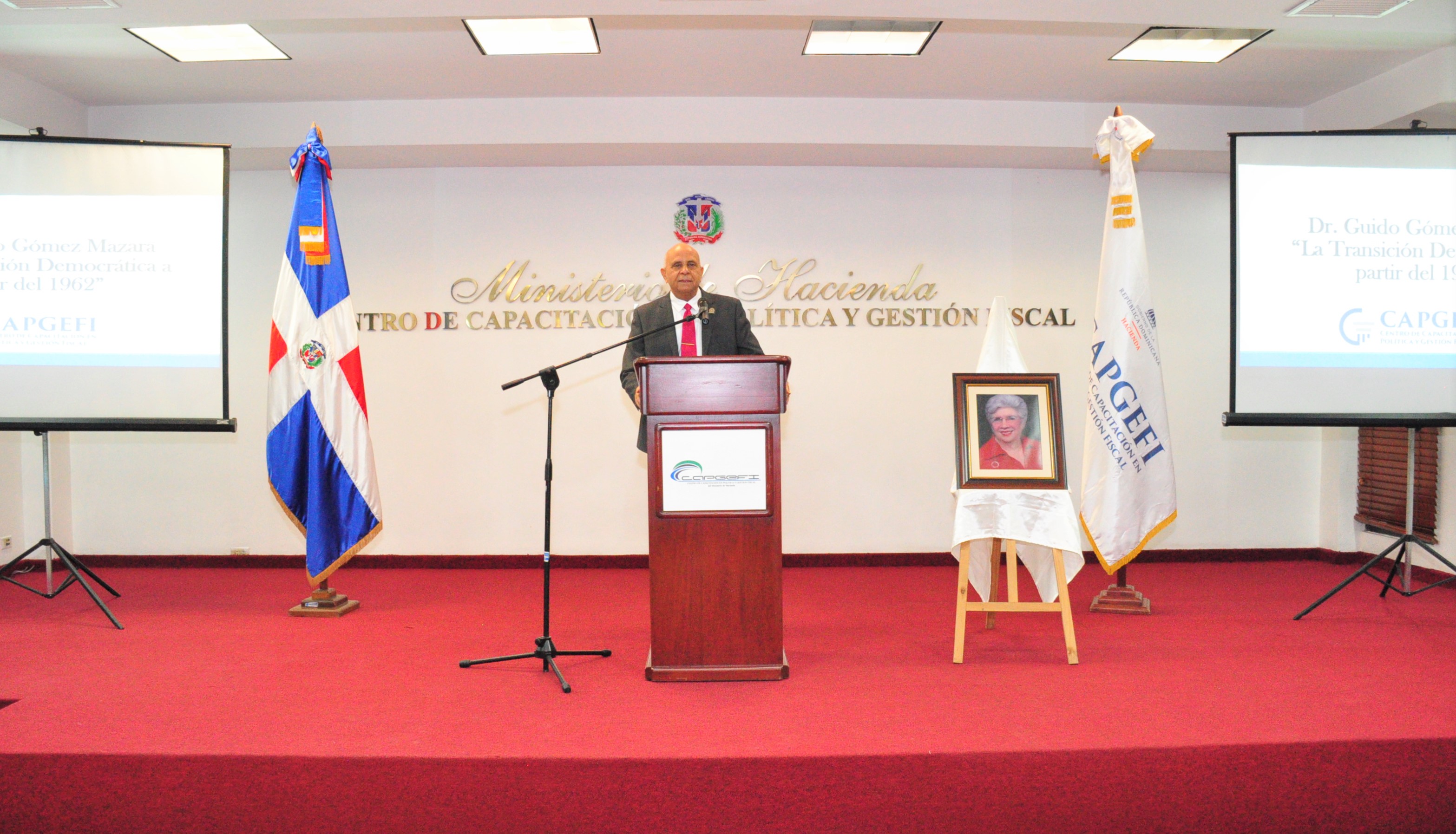 Santo Domingo. – El doctor Guido Gómez Mazara, ofreció hoy la conferencia titulada “La Transición Democrática a partir del 1962”, dirigida a los colaboradores de este centro de capacitación.