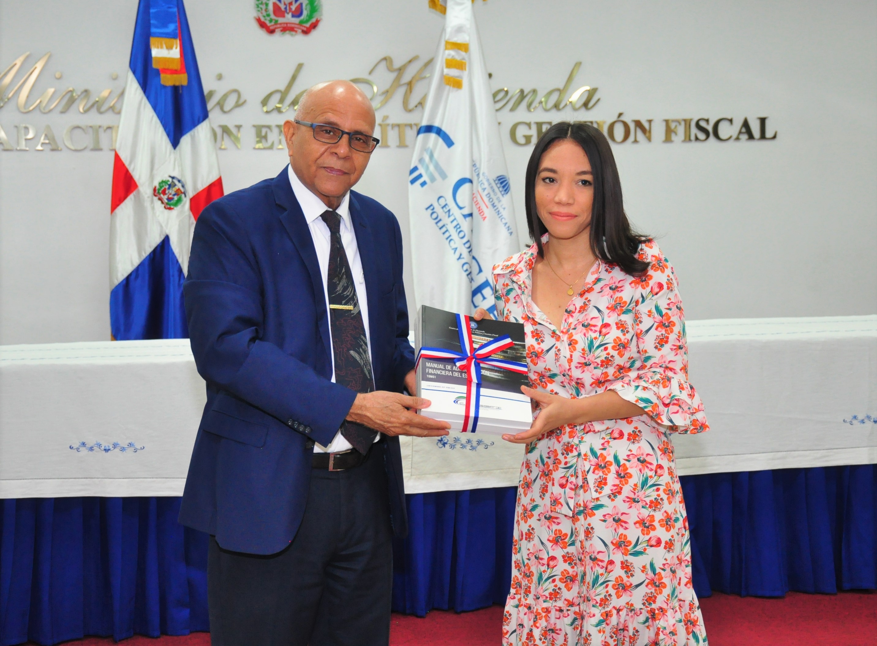 Disla, se refirió a la transformación personal del individuo y la adecuación del servidor público a las nuevas tecnologías. Al finalizar la actividad, el directivo hizo entrega a la expositora, del Manual de Administración Financiera del Estado, obra producida por el CAPGEFI, que contiene toda la normativa y procesos que rigen la materia hacendaria