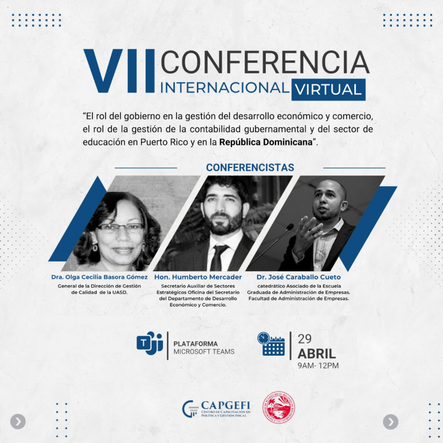 Santo Domingo, D.N.- El Centro de Capacitación en Política y Gestión Fiscal (CAPGEFI) y la Universidad de Puerto Rico, Recinto Río Piedras, realizaron la VII Conferencia Internacional titulada “La Gestión del Sector de Desarrollo Económico y Comercio y el Rol de la Gestión del Sector de Educación en la República Dominicana y Puerto Rico.”