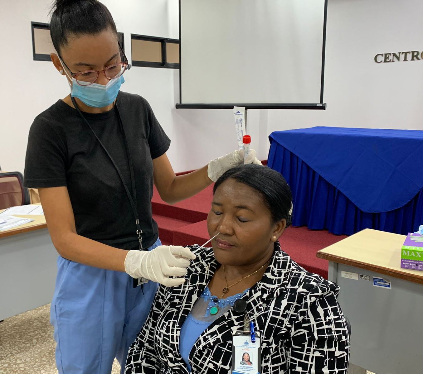 Las muestras fueron tomadas por la vía naso-faríngea y fueron aplicadas por la doctora Julissa Pozo acompañada por las enfermeras Mildalia Payano, Bismary Bautista y Anabelis Santana.