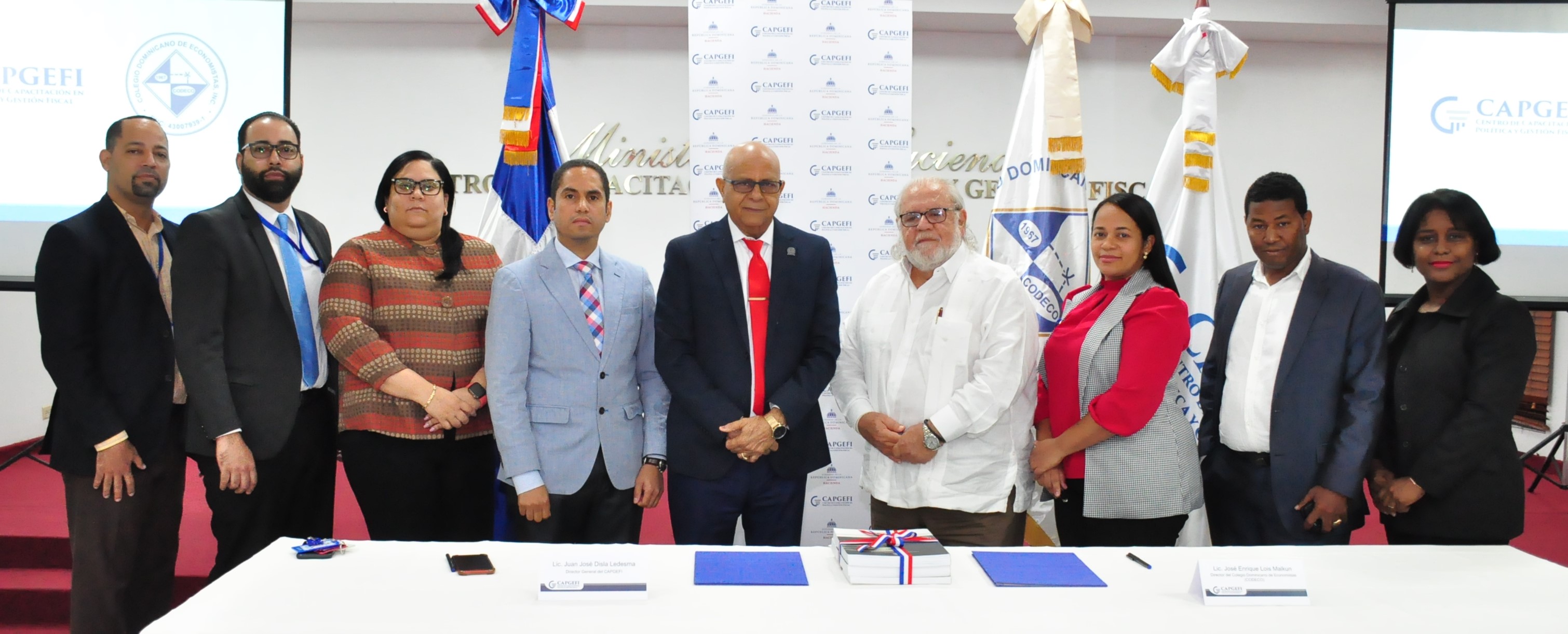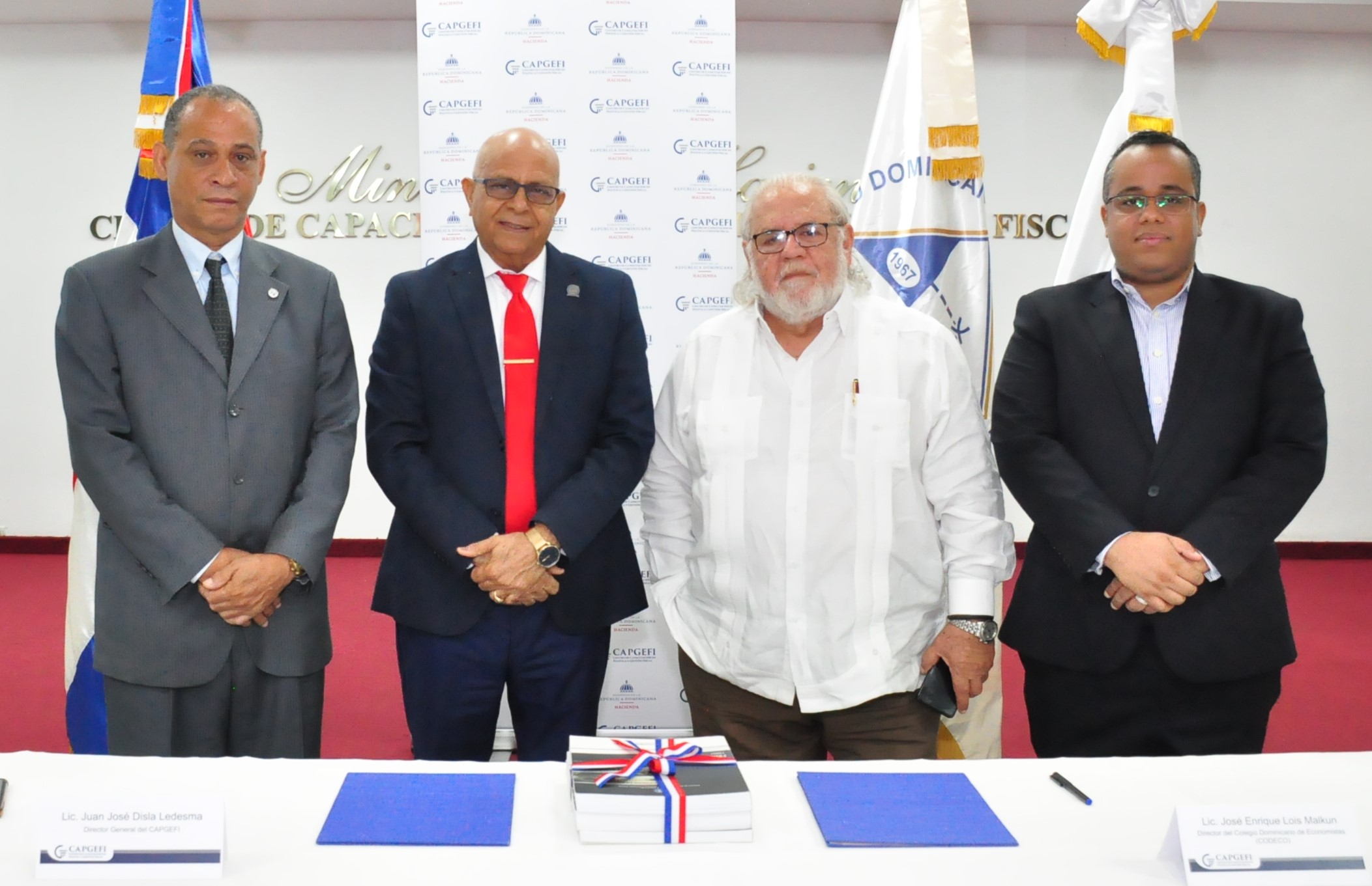 Santo Domingo, D.N.- El Centro de Capacitación en Política y Gestión Fiscal (CAPGEFI) y el Colegio Dominicano de Economistas, INC. (CODECO), firmaron hoy un acuerdo donde se comprometen a mejorar y fortalecer el desempeño de los profesionales de ambas instituciones en sus respectivas materias.