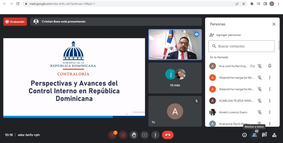 Santo Domingo, D.N. - El director de Revisión y Control de Calidad de la Contraloría General de la República, Lic. Cristian Báez, expuso este miércoles la conferencia virtual titulada “Perspectivas y Avances del Control Interno en República Dominicana”, dirigida a los servidores públicos del Estado y público interesado en la temática.