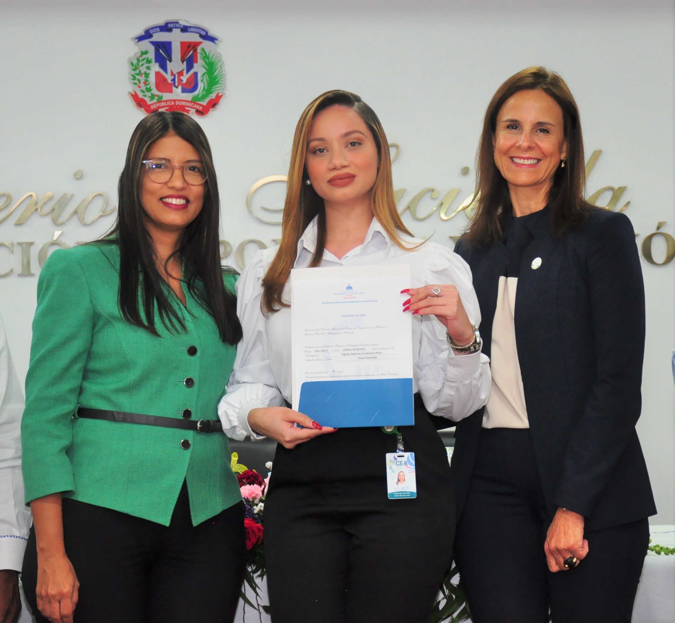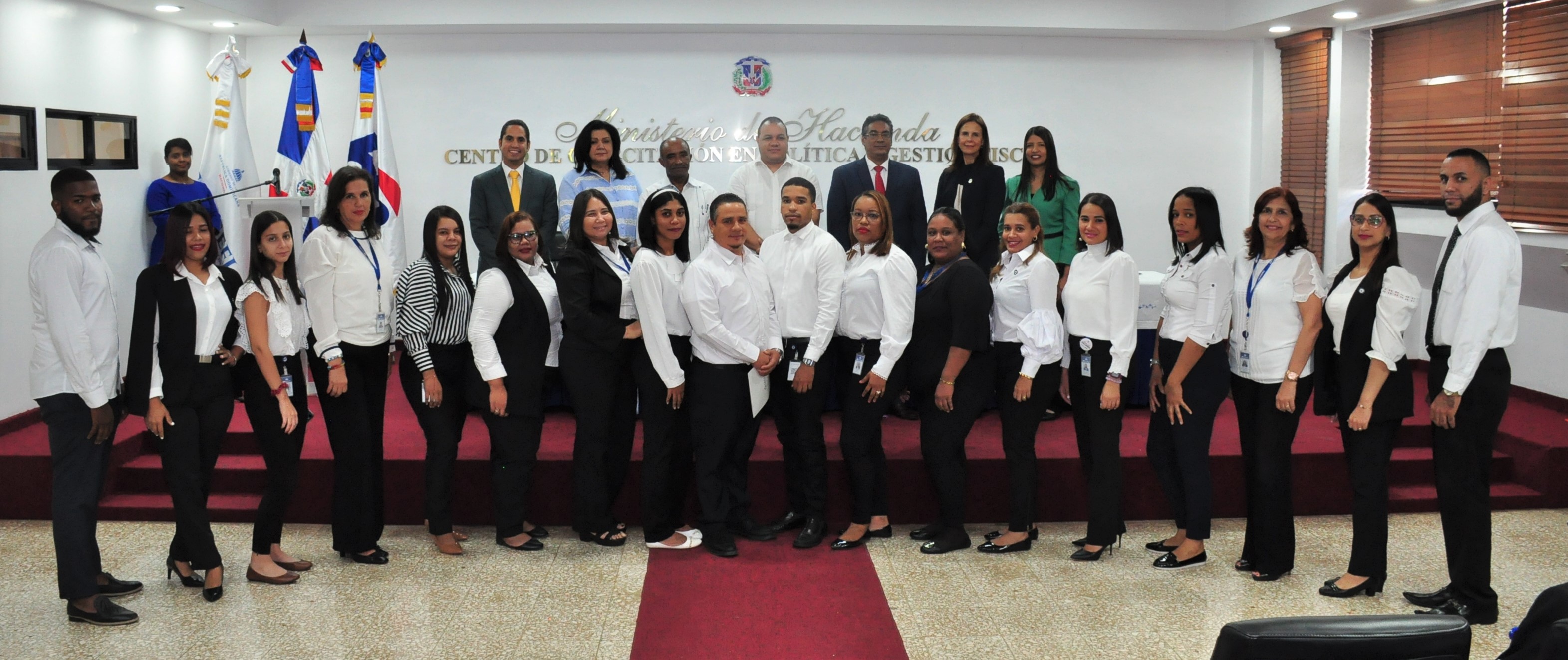 El acto de graduación fue encabezado por la directora de Recursos Humanos del Ministerio de Hacienda, Ivelisse Perdomo; José Manuel Abreu, por el Centro de Capacitación en Política y Gestión Fiscal, acompañado del director académico de la institución, Manuel Betancourt. Por Bienes Nacionales participaron el subdirector Administrativo y Financiero, David Nelson Brito Lozano, el subdirector general de Planificación y Desarrollo, Wilkin Moreno, la directora de Recursos Humanos, Wendy Leites Ricardo y Bilmaris Martínez de Herasme, encargada de capacitación, respectivamente.